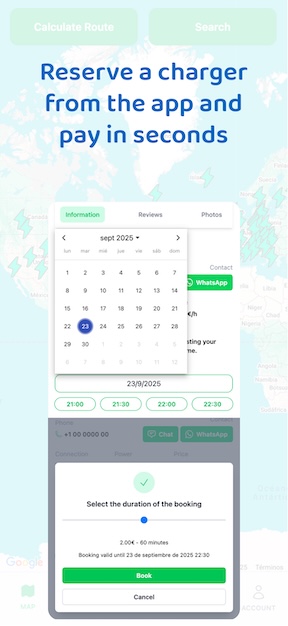 Explore the particular recharging points on your route and reserve your charge.